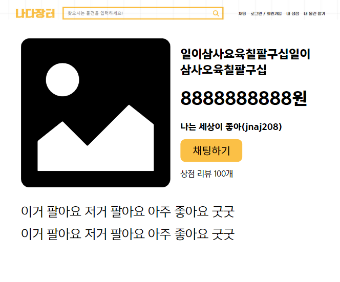 필요한 데이터 : 상품 가격, 상품 이름, 판매자아이디, 판매자닉네임, 상품 내용, 상점 리뷰 개수(아직은 안 만듦)
