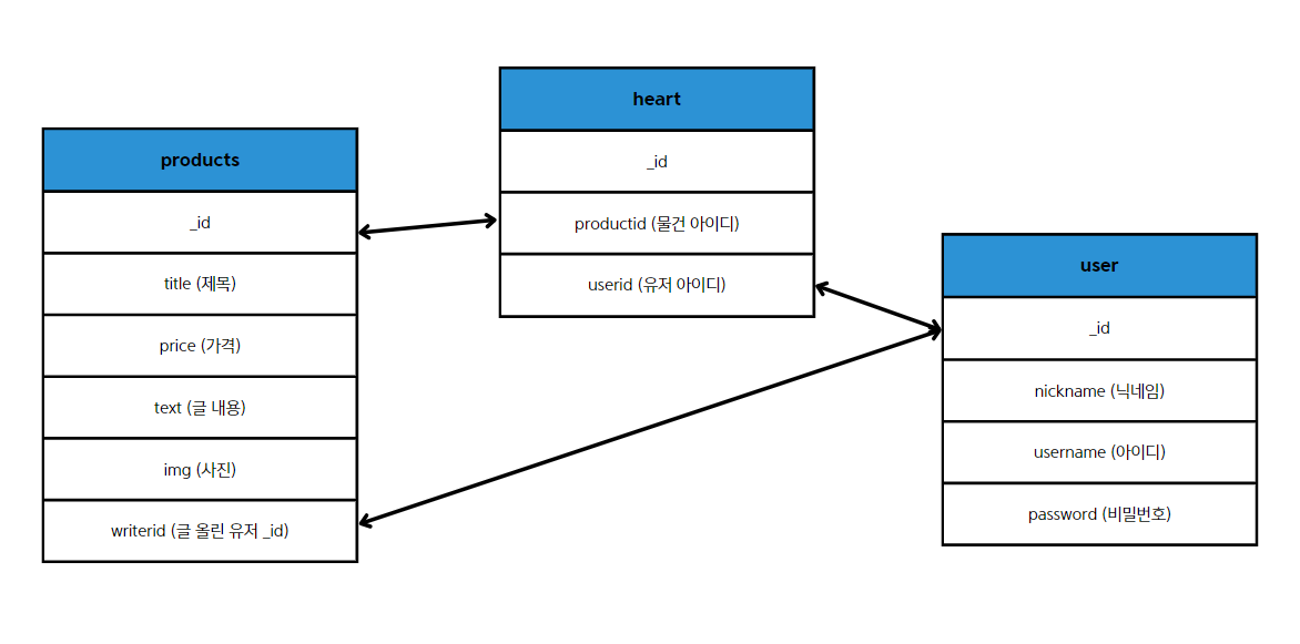 erd 라는 게 있길래 나도 한번 해봐야 할 것 같아서 대충 작성해봤다. 사실 erd는 관계형 데이터베이스를 위한 거지만 몽고디비도 어쨋거나 하나씩은 연관성이 있어야 이리저리 꺼내면서 다닐 수 있기 때문이다.