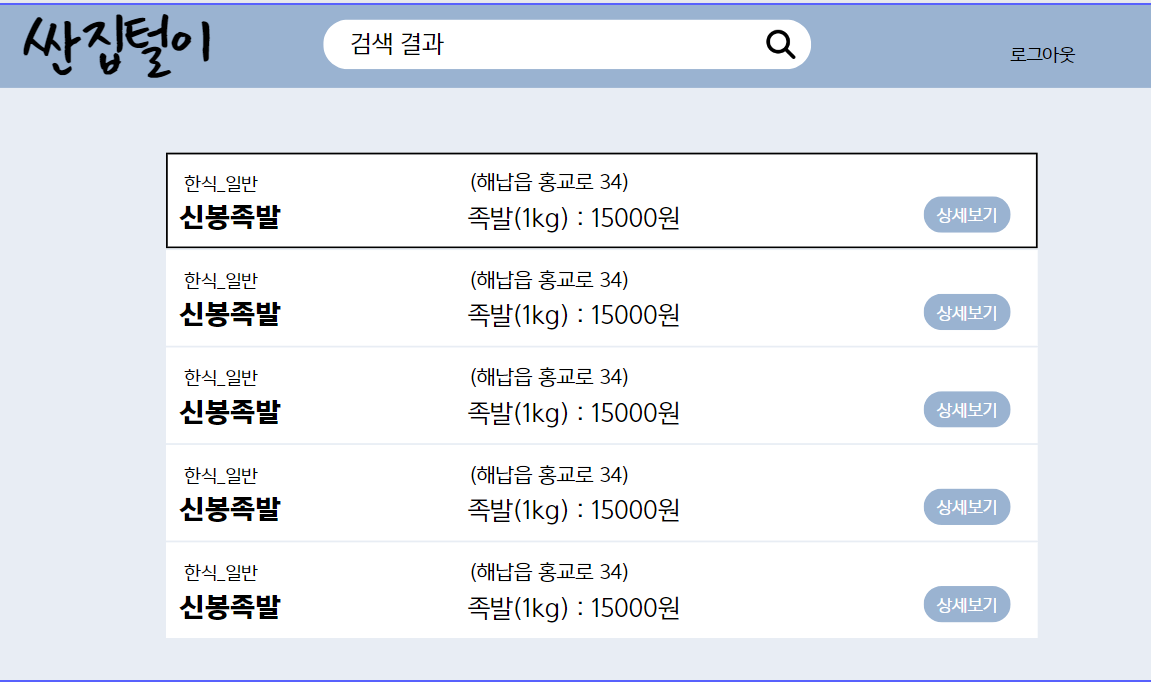 그리고 검색 결과 페이지를 어떻게 구현할지 고민해서 이렇게 하기로 했다(이건 디자인만 함).