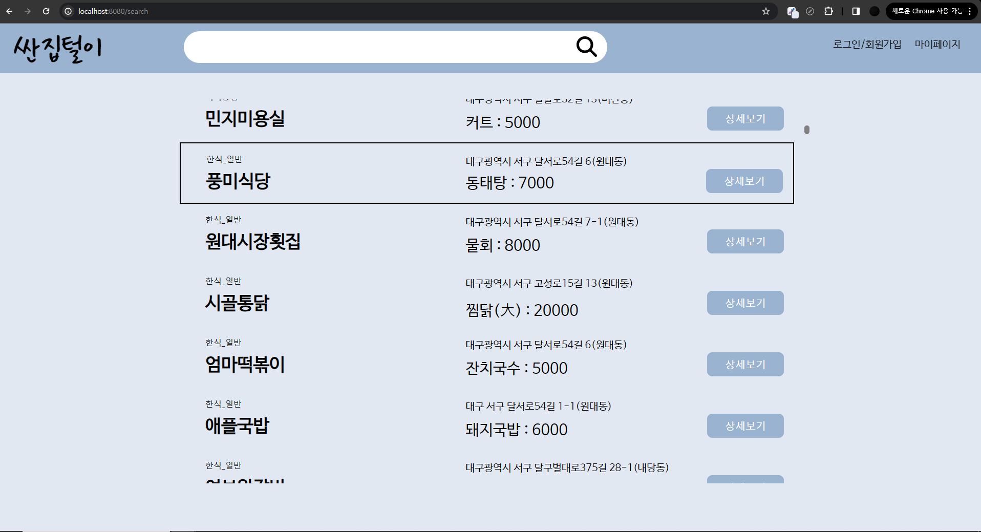 그렇게 해서 검색결과에 모든 데이터를 넣어봤는데