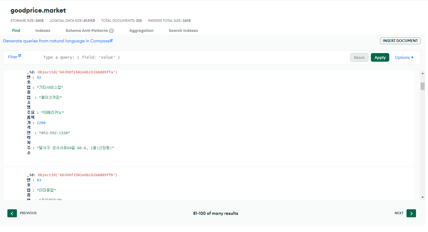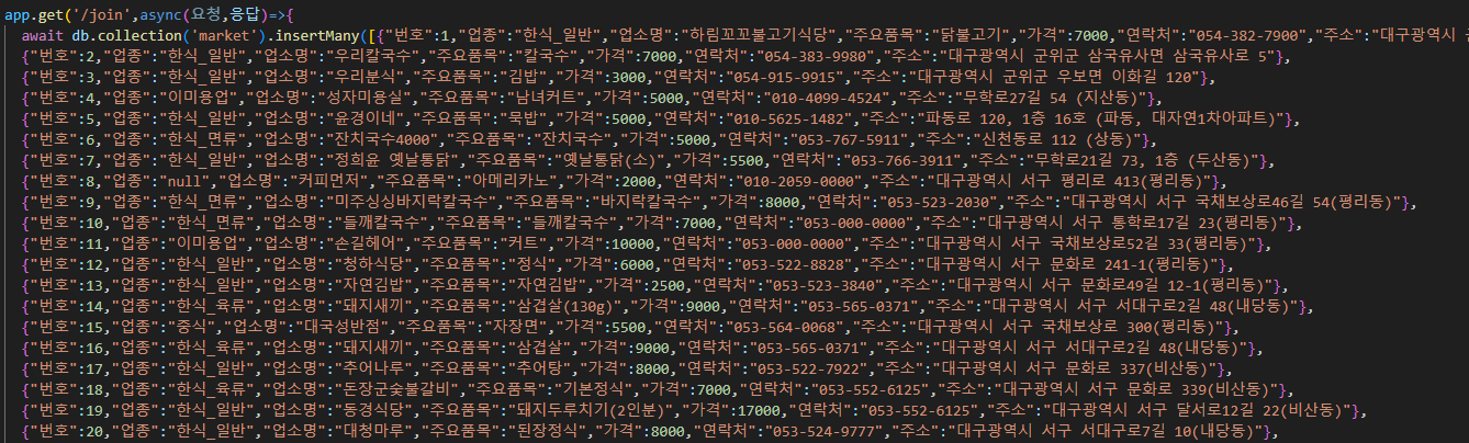 우선 엑셀파일로 되어있는 착한 가격 업소 데이터를 제이슨 형식으로 변형시켜 데이터베이스 안에 넣어야 한다.