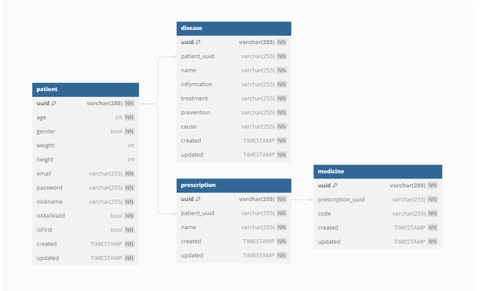 회원테이블의 이름은 페이션트다 (솔직히 이름이 좀 ㅈ같다 하지만 참고 그냥 한다)
