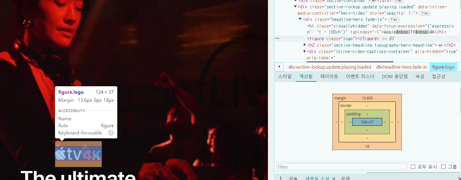 동영상 위에 로고가 있어서 로고 따오려고 마우스를 대봤더니 이미지가 figure라는 태그로 감싸져있었다.